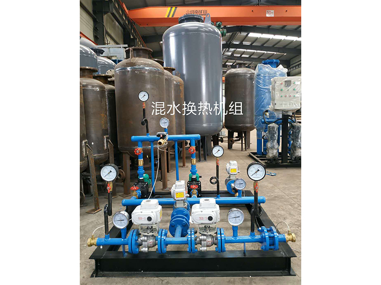 直供混水设备是将部分高温的外网供水与部分低温的采暖系统回水混合至采暖系统供水的温度,经混合水泵送至采暖系统,系统回水一部分继续混水一部分经压力调节后回到外网,从而实现低温的采暖系统与高温的外网直接连接。