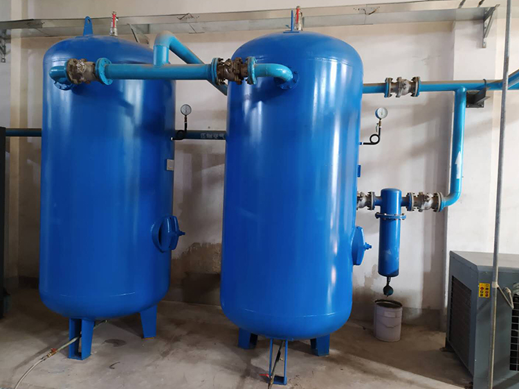 空气压缩机是煤矿重要大型固定动力设备之一,在井下、地面均被广泛使用,主要是供给采掘工作面的风镐、风钻、凿岩机使用。储气罐是空气压缩机的配套设备,安装在室外,空气进入压缩机通过增压后送入储气罐,然后再由储气罐管道供到各个用气地点,储气罐在空气压缩系统中的主要作用是保证供气稳定。压缩空气在储气罐中沉淀积水,调节气动设备因用气量不平衡而造成气压波动、增加用气设备的压力稳定性,或者储备一部分压缩空气,在空压机发生故障时,使用户用此部分压缩空气对气动设备或气动控制系统作紧急处理之用。
